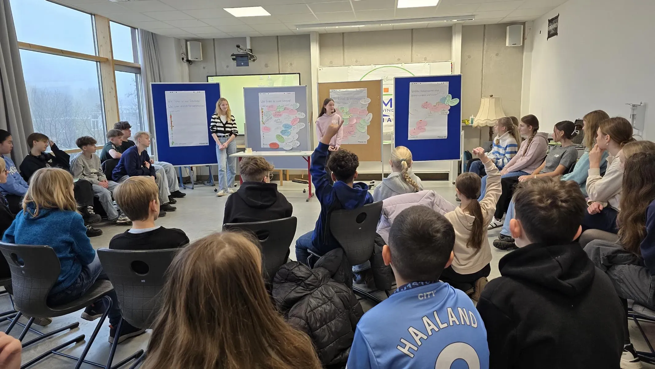 Ein besonderer Schwerpunkt liegt auf der Bildung für nachhaltige Entwicklung: Initiativen wie der Klimarat und das Klimaparlament, die zur Installation einer Photovoltaikanlage auf dem Schuldach geführt haben, zeigen, wie ökologische Verantwortung praktisch umgesetzt wird. Ebenso wichtig ist das soziale Lernen – insbesondere in den ersten Jahrgängen fördert die Schule gezielt Gemeinschaftsbildung, Empathie und Teamfähigkeit.